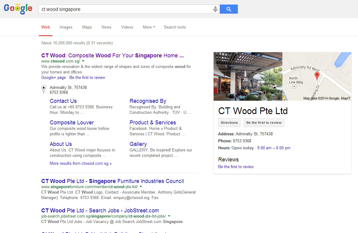 0 Optimize the search engine visibility for CT Wood Pte Ltd, a composite wood leader in Singapore region market.